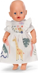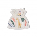 Adj a babádnak egy stílusos nyári szettet. A fehér ruha színes dzsungelmintákkal és aranyos zsiráffal légies szabású, finom fodrokkal az ujjakon, és könnyen feladható. Tökéletes ötletes, változatos és hosszan tartó játékhoz.