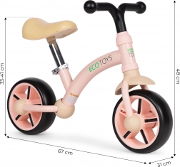 Az ECO TOYS futóbicikli ideális kisgyermekek számára, akik a kerékpározás első lépéseit teszik meg. Fejleszti a motorikus koordinációt és megtanít az egyensúlyozásra, egyben felkészít a későbbi klasszikus kerékpározásra.