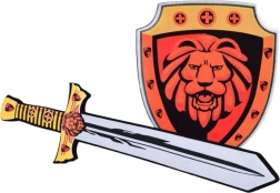A kard és a pajzs könnyű, rugalmas és biztonságos habból készülnek; kellemes tapintásúak és csökkentik a horzsolások kockázatát. A puha kialakítás lehetővé teszi a kis lovagok számára, hogy párbajokat és lovagi tornákat gyakoroljanak, biztosan és fájdalmas ütésektől mentesen.