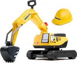 A csomag része egy sárga, KOMATSU mintás sisak – tökéletes kiegészítő a tematikus játékhoz a kis építőknek.