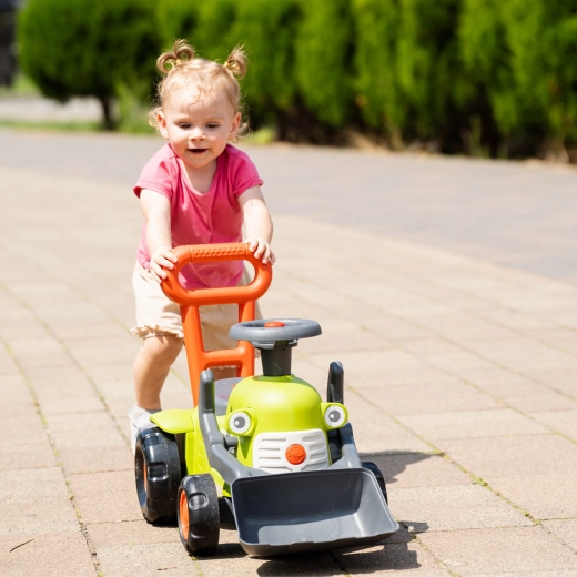 Gyermek tolóbicikli traktor CLAAS márkájú Falk gyártótól, elöl rakodóval és levehető pótkocsival – tökéletes választás kis gazdáknak 12 hónapos kortól. Stabil felépítést, kormányon dudát és könnyű... Mutasson többet