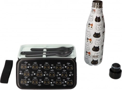A szigetelő felépítésnek köszönhetően hosszabb ideig segít megőrizni az ital megfelelő hőmérsékletét. Karcsú teste (magasság 26 cm, átmérő 7 cm) kényelmesen illeszkedik pohártartókba és hátizsákokba. Az elegáns, macskás grafika kiemeli stílusát.
