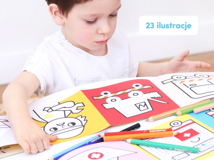 Lépjen be az alkotás világába a kreatív készletünkkel, amely két hosszú harmonika füzetet tartalmaz színes járművekkel. Ezek az átfogó illusztrációk azoknak a kis művészeknek készültek, akik lelkesednek a rajzolásért és festésért.