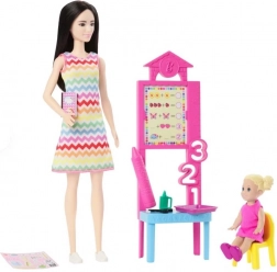 A szett tartalmazza a Barbie babát és kis diákját, amely lehetővé teszi a kreatív szerepjátékot az iskolában.
