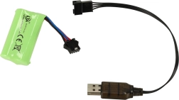 A csomag tartalmaz egy 7,4 V 500 mAh akkumulátort és USB töltést. Nincs több elem – mindig készen áll az akcióra.