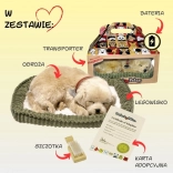 A lélegző arany retriever kölyökkutya örökbefogadása varázslatos társ, aki megnyugtat és felvidít. Az alvó kutyus nyakörvvel és élethű részletekkel úgy néz ki, mint az igazi, a légzés közbeni finom „hasemelkedés” természetes és gyengéd hatású. A csomag része egy kényelmes fekhely is, hogy a kölyöknek legyen saját biztonságos kuckója.