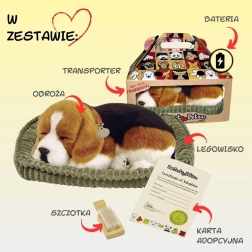 A Perfect Petzzz szuszogó beagle kölyök egy plüss játék, amelyet úgy terveztek, hogy a lehető legélethűbben utánozza az alvó kiskutyát. Finoman emelkedik és süllyed, mintha lélegezne, és a valósághű szőrzetárnyalatoknak és a puha fekhelynek köszönhetően kedvelt kiegészítője lesz a gyerekszobának és a nappalinak is.