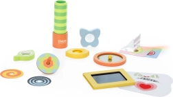 Ezzel az oktatási készlettel a Classic World márkától bemutathatja gyermekeinek az optikai illúziók titkait. A készlet 16 különböző elemet tartalmaz, amelyek felkeltik gyermeke érdeklődését és kiváncsiságát. Minden elem kiváló minőségű fából készült és vonzó színekkel rendelkezik.