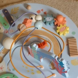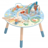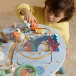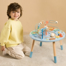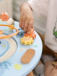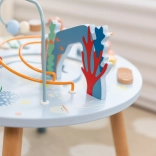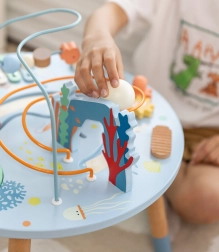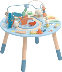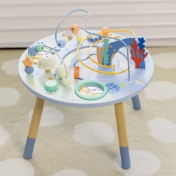 A Fa aktivitási asztal Tengeri élet kiváló bevezetés az alakok és színek világába. Biztonságos a legkisebbek számára, kiváló minőségű fából készült és ártalmatlan festékekkel festett. A gyerekek álló helyzetben játszva van serkentve, ami javítja koordinációjukat és egyensúlyukat. A oktatási előnyök ennek az asztalnak felmérhetetlenek, akár a finom motorikus készségek javításáról, akár a zenei készségek fejlesztéséről van szó.