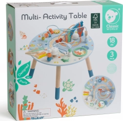 Fa aktivitási asztal a Classic World márkától ideális játék a kíváncsi gyerekeknek! Tele van színes attrakciókkal, mint például öt motorikus aktivitás, fogaskerekek, xilofon vagy dob, amelyek sok örömet okoznak és egyben segítenek fejleszteni a fontos készségeket, például a kézügyességet, logikai gondolkodást és ügyességet.