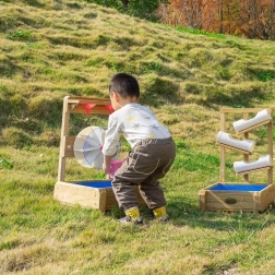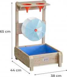 Ez a kültéri vizes játék természetes, impregnált fából készült, és tökéletes kiegészítője bármely homokozónak és kertnek. A gyerekek megismerik a víz áramlásának és az ok–okozatnak az elvét, miközben a forgó kerék és a vályúkon átfolyó víz örömteli felfedezést nyújt.
