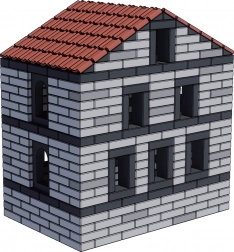 A készlet részei háromszög alakú tartógerendák, íves ablakok és 32 tetőelem – ideális kiegészítő bármely építmény befejezéséhez.