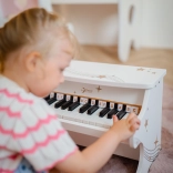 Ez a stílusos Classic World gyerekzongora több mint játék – masszív fából készült, sima fekete lakkozással és tiszta, kellemes hangzással rendelkező, igényesen megmunkált hangszer. A billentyűk fölötti hangjegyjelöléseknek köszönhetően a gyerekek könnyen megtanulják az első dallamokat, és már egészen kicsi korban fejlődik zenei érzékük.