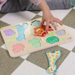 Ez a minőségi, állatmintás fa betétrács ideális első kirakó a legkisebbeknek. A gyerekek játékos módon gyakorolják a helyes fogást, a türelmet és a koncentrációt, miközben a színes állatokat a helyükre illesztik.
