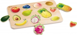 A CLASSIC WORLD fa kirakó gyümölcsös motívumokkal ideális első puzzle a legkisebbeknek. Játék közben a gyerekek a különféle gyümölcsöket a megfelelő nyílásokhoz párosítják, ezáltal természetes módon fejlesztik a finommotorikát, a szem-kéz koordinációt és a logikus gondolkodást. Az élénk színek és a valósághű illusztrációk motiválnak az ismételt játékra és bővítik a szókincset.