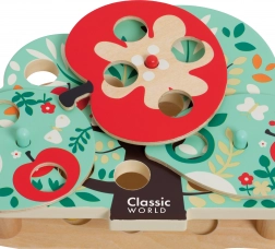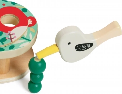 A gyerekek egy mágneses csőrű madarat használnak, amellyel színes kukacokat húznak ki a fa nyílásaiból – szórakoztató pontossági és koordinációs gyakorlás.