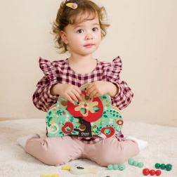 A gyöngyök kezelése és a pontos célzás a nyílásokba fejleszti a finommotorikát, a türelmet és a gyerekek figyelmét.