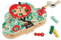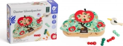 A „harkály-madár” mágneses csőrével a gyerekek színes gyöngyöket–kukacokat fognak, amelyek a fa nyílásaiban rejtőznek. A játék intuitív, biztonságos, és ösztönzi az ismételt próbálkozást, ezáltal természetes módon fejleszti a türelmet és a pontosságot.