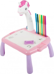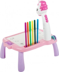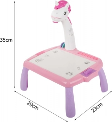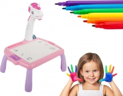 Támogasd a gyerekek kreativitását ezzel a rózsaszín, unikornis alakú projektoros rajzasztallal. A vetített sablonoknak köszönhetően a gyerekek könnyedén átrajzolhatják a képeket, közben vidám dallamokat hallgatnak, és fejlesztik finommotorikájukat, fantáziájukat és a koncentrációt. A stabil felépítés, a filcek és korongok számára kialakított rekeszek, valamint akár 24 sablon teszi tökéletes ajándékká a kis művészeknek.