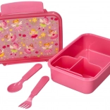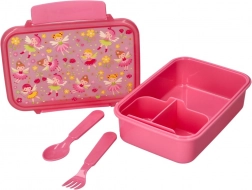 Praktikus uzsonnás doboz tündér motívummal, ideális iskolába, kirándulásokra és szakkörökre. Tartalmaz evőeszközt – villát és kanalat. A doboz alkalmas fagyasztóba, és mikrohullámú sütőben fedél nélkül melegíthető (max. 100 °C). A kompakt méretek könnyen elférnek az iskolatáskában.