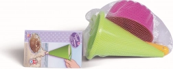 Ezzel az Androni homokozó készlettel életre kelnek a játékok a homokozóban és a strandon is. A gyerekek a díszítő tölcsérben keverhetik a homokot vízzel, és „muffinokat”, homokformákat és egyéb alkotásokat készíthetnek. A minőségi műanyag és az olasz gyártás hosszú élettartamot, biztonságos éleket és könnyű tisztítást garantál.