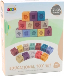 Ezek a puha szenzoros kockák ideális oktatójátékok a legkisebbek számára. A különböző színek, formák és felületi textúrák érintésre és felfedezésre ösztönöznek, míg a beépített sípoló nyomásra hangot ad, ami erősíti a koordinációt és a hallási észlelést. A biztonságos anyagnak köszönhetően a kockák könnyen megfoghatók, nyomkodhatók, és vízben való játékra is alkalmasak.