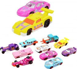 Ezt a stílusos szettet 3 éves kortól ajánljuk azoknak a gyerekeknek, akik imádják az autókat és a versenyzést. A fém szerkezet műanyag részletekkel hosszú élettartamot és gondtalan játékot biztosít. A rózsaszín, kék és lila pasztell árnyalatok ösztönzik a fantáziát, és minden modellt egyedi darabbá tesznek a gyűjteményben.