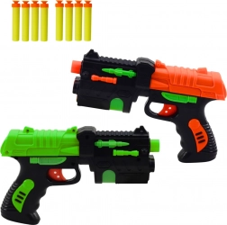 2 pisztoly, 8 db tapadókorongos szivacslövedék