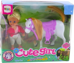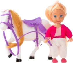 Aranyos lovas készlet mini babával és fehér lóval, amely órákig tartó kreatív szórakozást nyújt. 12 cm magas baba lovas öltözetben készen áll a lovaglásra. A ló hosszú sörénnyel és farokkal rendelkezik, és lila nyereggel és kantárral van felszerelve az élethű játékért. A mozgatható elemeknek köszönhetően a baba kényelmesen ül a nyeregben, a gyerekek pedig fejleszthetik fantáziájukat, finommotorikájukat és empátiájukat az állat gondozása közben.