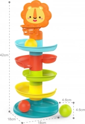 Ez a színes spirál torony segít fejleszteni gyermekeid motorikus képességeit, koordinációját és pontosságát. Az öt szint hosszú távú szórakozást biztosít, míg a barátságos oroszlán a csúcson inspirálhatja a gyerekeket célok elérésére és képességeik javítására. A labdák apró elemeket tartalmaznak, amelyek hangot adnak ki, és további érzékszervi ingereket kínálnak. A játék biztonságos és tesztelt műanyagból készült a kis játékosok maximális biztonsága érdekében.