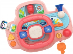 A kormány elforgatásával a kisautó mozog, ami fokozza a szórakozást.