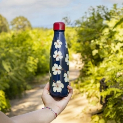 Stílusos és praktikus, virágmintás termosz, amely hosszabb ideig megőrzi italai kívánt hőmérsékletét. Kompakt méreteinek köszönhetően ideális utazáshoz, munkába és iskolába is. Űrtartalom 500 ml, magasság 26 cm és átmérő 7 cm – kényelmes hordozásra, valamint hátizsákban vagy pohártartóban való tárolásra.