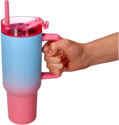 Stílusos nagy termoszbögre szívószállal, modern kék–rózsaszín átmenettel, amely hosszabban tartja italait ideális hőmérsékleten. Praktikus tetővel, kényelmes fogantyúval és 1200 ml űrtartalommal az egész napos hidratáláshoz. Utazáshoz, munkába és sporthoz is alkalmas – tartós, kényelmes és könnyen tisztítható.