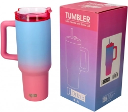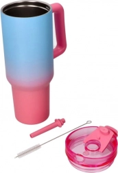 Fedezze fel a nagy szívószálas termoszbögre kényelmét, amely a 1200 ml-es nagy űrtartalmat könnyű és praktikus kivitelben kínálja. A szívószálas tetőnek köszönhetően útközben is kényelmesen ihat, míg a kényelmes fül megkönnyíti a hordozást. A trendi kék–rózsaszín ombré dizájn stílust ad minden napnak.