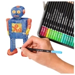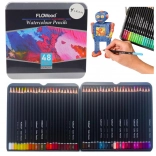 Professzionális 48 darabos akvarell ceruzakészlet kezdőknek és haladó művészeknek. Intenzív pigmentáltságot, puha vonásokat, zökkenőmentes színkeverést és könnyű árnyékolást kínál. Minden ceruza színjelöléssel rendelkezik a gyors tájékozódásért, és minőségi hársfából készül a könnyű hegyezhetőség és a törésállóság érdekében. Az elegáns fémtok védi a készletet és megkönnyíti a szállítást.