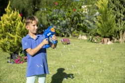 A csomag része a 0,4 l-es utántöltő, így azonnal kezdheted a játékot. Az integrált fényhatások különleges hangulatot adnak minden játéknak, főleg szürkületben. Működéséhez 3× AA elem szükséges (nem tartozék).