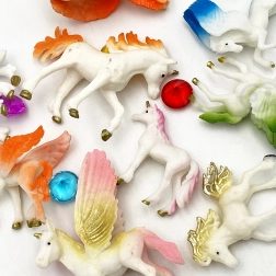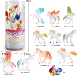 Tíz unikornis különböző pózokban és színekben, kiegészítve hat „gyémánttal”, amely inspirálja a gyerekeket történetek kitalálására és fejleszti a képzelőerőt.