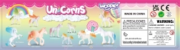 Ez a bájos unikornis figura szett a WOOPIE márkától órákon át tartó szórakozást és fantáziadús játékot nyújt a gyerekeknek. A különböző pózokban álló figurák színes sörényekkel, farkakkal és szárnyakkal saját történetek alkotására csábítanak, míg a „drágakövek” plusz csillogást adnak a játéknak. A minőségi kivitelnek köszönhetően önálló játékhoz és a gyerekszoba díszeként is ideális.