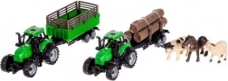A zöld traktorok lecsatolható kocsikkal a valódi farmmunkát utánozzák – a széna szállításától a fa vagy az állatok mozgatásáig.