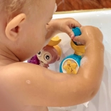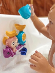 Tedd kellemesebbé a fürdést a színes WOOPIE vízijátékkal majommal – önts vizet a sapkájába a pohárral, és figyeld, ahogy forognak a szemei, kinyílik a szája, és a víz a kádba áramlik. A hernyó és a csillag a vizet a vízimalomra irányítja, miközben az erős tapadókorongok megbízhatóan a falon tartják a játékot. Remek szórakozás, amely fejleszti a finommotorikát, a képzeletet és a gyermek koncentrációját.