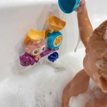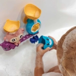 A hátoldalon lévő két tapadókoronggal könnyedén rögzítheted a játékot a csempére vagy a kád oldalára. A játék minőségi, sima műanyagból készült, gondosan kidolgozott részletekkel, és 18 hónapos kortól ajánlott. Támogatja a kéz–szem koordinációt, a kíváncsiságot és a koncentrációt fürdés közben – ideális a víz kis felfedezőinek.