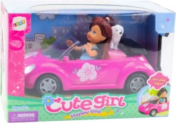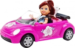 A bájos baba a stílusos, rózsaszín kabrióba ül, amely nyitott kialakításának köszönhetően megkönnyíti a figura betételét és kivételét. A mozgatható karoknak és lábaknak köszönhetően könnyedén a volán mögé ültethető, és már indulhat is a kirándulás a hűséges kiskutyával a hátsó ülésen.