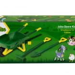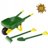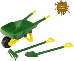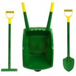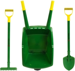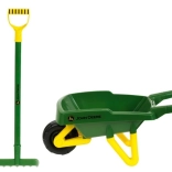 Ez a minőségi szett a JOHN DEERE ikonikus színeiben ideális azoknak a gyerekeknek, akik szívesen segítenek a kertben. A tartós talicska kényelmes fogással, valamint a könnyű lapát és gereblye gyerekkezekhez tervezve biztonságos és szórakoztató használatot biztosít föld, homok, lomb vagy fű szállításához.