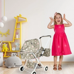 Biztosítsa gyermekének az ideális környezetet kedvenc babájának gondozásához ezzel az elegáns babakocsival. Úgy tervezték, hogy tökéletesen utánozza a valódi gyerek babakocsit, lehetővé téve a gyerekeknek, hogy belépjenek a szerepjátékok világába. A mély gondolával és állítható fogantyúval ideális otthoni és szabadtéri sétákhoz.