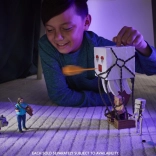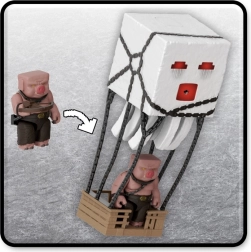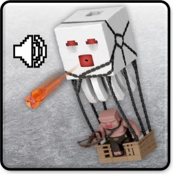Éld át élőben a Minecraft filmes kalandját. Az interaktív Ghast tetején található gomb fényeket, hangeffekteket aktivál, és narancssárga lövedéket lő ki a szájból. A láncoknak és a függő „ketrecnek” köszönhetően könnyedén eljátszhatod azokat a jeleneteket, amikor a Piglinek a Ghastokat használják támadásra.