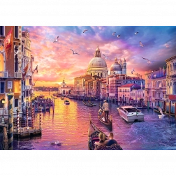 Töltse nyugodtan idejét a velencei Grand Canale gyönyörű naplementés jelenetével. Az 1000 darabos puzzle élénk színeket, precíz vágást és masszív elemeket kínál, amelyek tökéletesen illeszkednek egymáshoz. Ideális ajándék Velence rajongóinak és tapasztalt kirakózóknak.