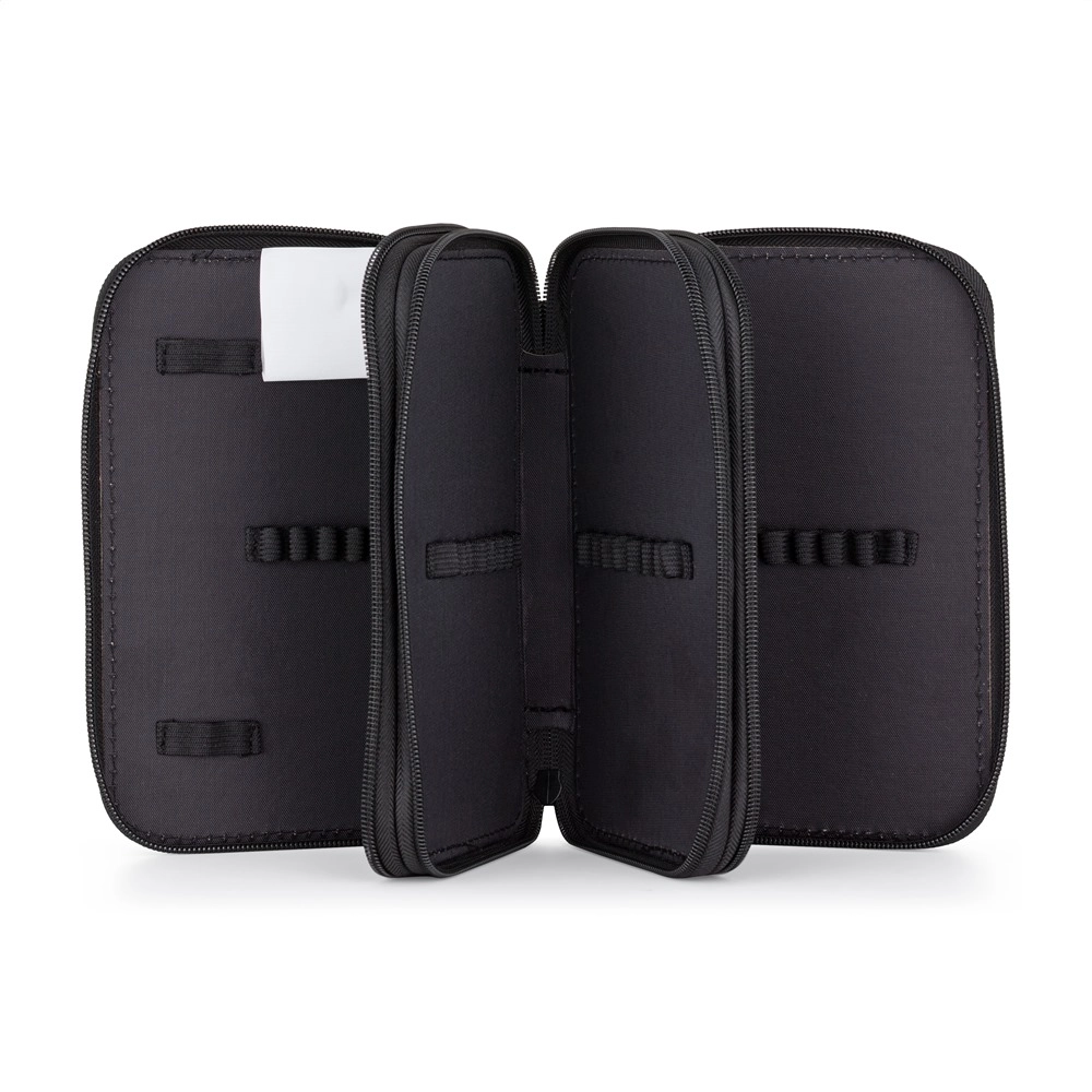 A robusztus, nagy húzókkal ellátott cipzár gyors és kényelmes kezelést biztosít, így a tolltartó a gyerekkezek számára is könnyen nyitható. Az egyik szintben található átlátszó zseb ideális a heti órarendhez vagy apró jegyzetekhez.