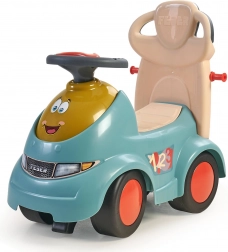 A fényekkel és hangokkal ellátott kormány ösztönzi az érzékelést és a szerepjátékot, míg a 360°-ban forgó kerekek a lábtartók alatt megkönnyítik a kanyarodást. A praktikus ülés alatti rekesz elnyeli az apróságokat és játékokat, így minden kéznél van.