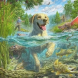 Induljon el egy horgászkalandra ezzel a gyönyörű kirakóval, amely egy Labrador horgászat közbeni jelenetét ábrázolja. Az 1000 darabbal kihívást talál, amely szórakozást és kikapcsolódást nyújt minden generációnak.