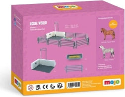 Fedezze fel a lovak világát és mindennapi gondozásukat. Ez a szett valósághű karámot kínál mosóhellyel, amely ösztönzi a gyerekek fantáziáját, és közben megtanítja, hogyan kell a lovakról gondoskodni. Hiteles részleteinek köszönhetően remek kiegészítője lesz a figuragyűjteménynek.